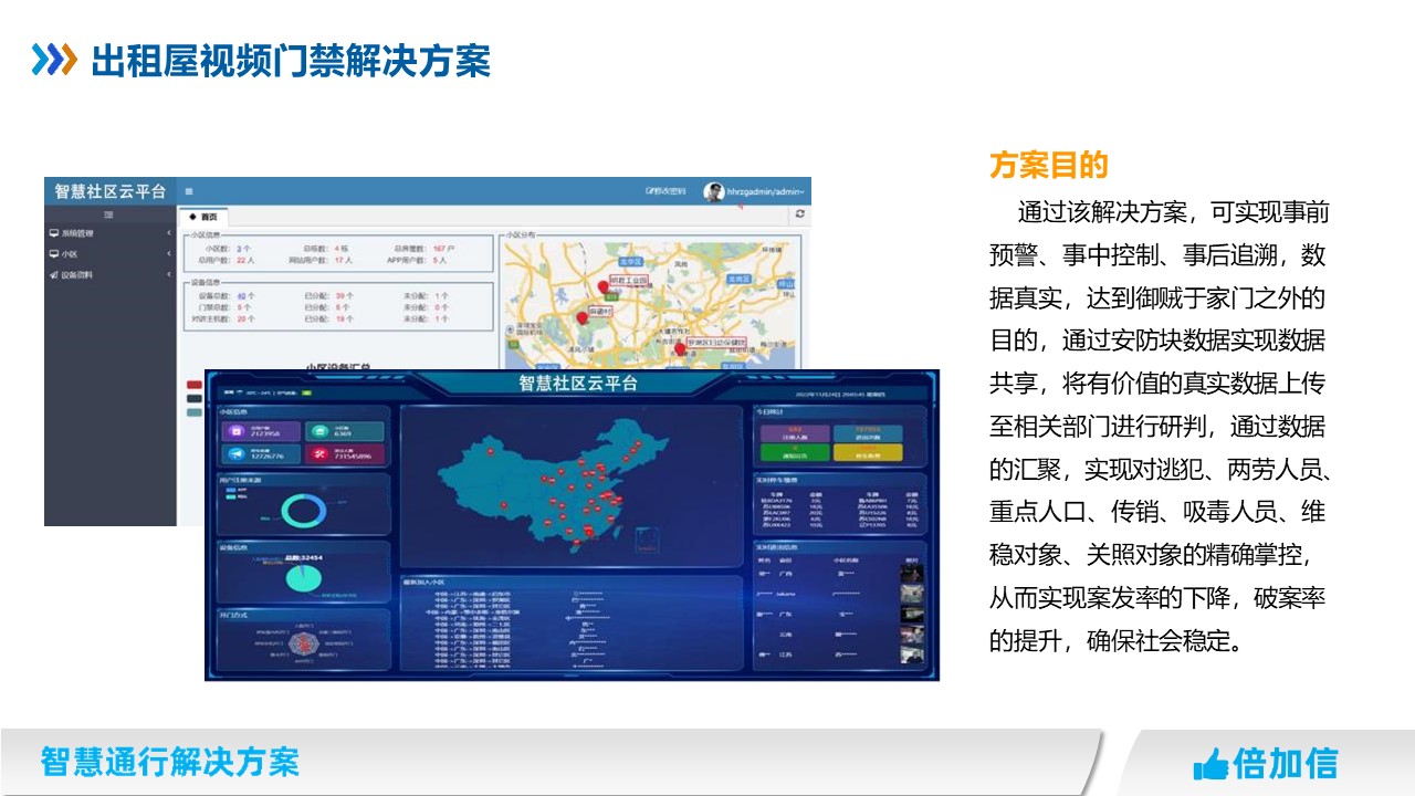 為落實公安信息化建設服務基層和實戰(zhàn)的要求,創(chuàng)新出租屋和流動人員的管理模式,切實加強社會治安綜合治理水平,進一步提升打擊防控能力,在小區(qū)、城中村、出租屋等場所推廣建設具有門禁、視頻監(jiān)控和報警等功能的出租屋視頻門禁報警系統(tǒng)。