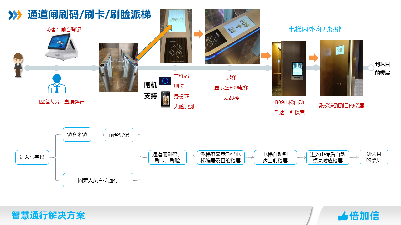 1、支持固定人員刷卡、刷碼、刷臉派梯;