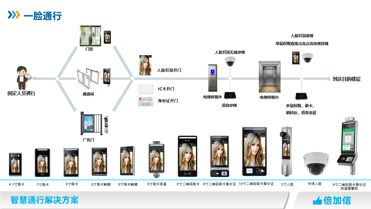 1、人臉授權(quán)后可通行門(mén)禁、梯控、閘機(jī)等設(shè)備;